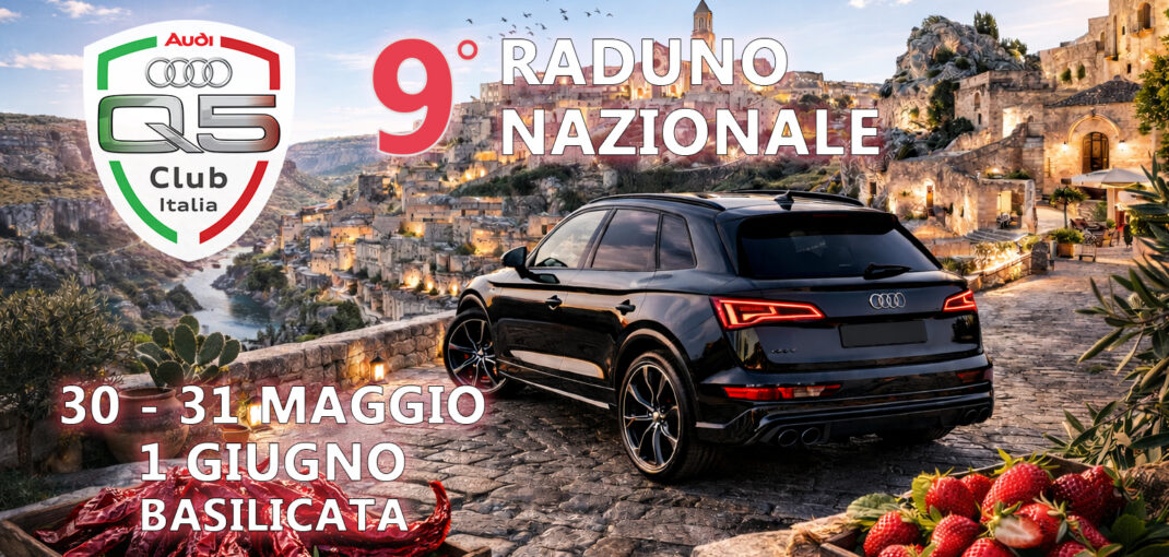 Dal 30 maggio al 1 giugno il cuore dell’Audi Q5 Club Italia batte in Basilicata: è ufficialmente in arrivo il 9° Raduno Nazionale!E quest’anno lo facciamo in grande: in base alle adesioni, per chi vorrà godersi la regione con più calma e vivere qualche giorno extra di strada, panorami e convivialità. Basilicata: una terra da scoprire […]